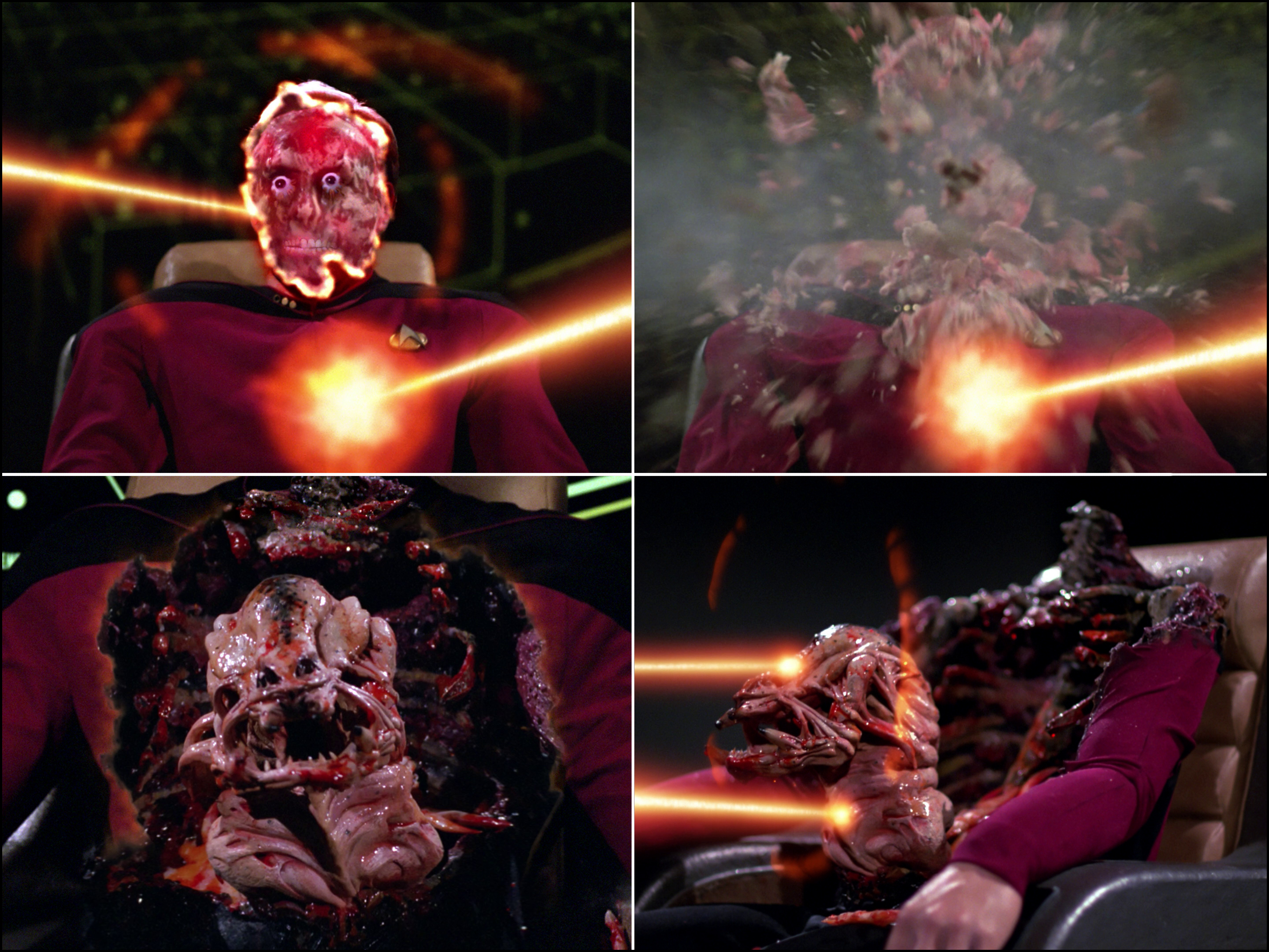- One-quarter, force 3 and level 10 were different names for the kill setting on a hand phaser. (TOS: "The Man Trap", "Operation -- Annihilate!"; TNG: "Aquiel") The kill setting on hand phasers used by the Mordanites had a distinct sound from the stun setting. (TNG: "Too Short A Season") To a humanoid infected by a parasitic being, the kill setting only caused unconsciousness, due to the high levels of adrenaline in the target's body. However, extended exposure to a body part such as the head of a humanoid would cause it to explosively vaporize. Two phasers set to kill could also disintegrate smaller lifeforms such as the neural parasite mother creature with extended exposure. (TNG: "Conspiracy") The kill setting was also non-lethal to the flying parasites that invaded Deneva in 2267. Because each parasite was part of a huge organism, and drew strength from that organism, it could largely resist force 3. Parasites exposed for five to ten seconds reacted as if mildly stunned; they fell from the surface to which they were attached, and did not react to external stimuli for about a minute. (TOS: "Operation -- Annihilate!") Firing a phaser on kill at point blank range against an Andorian can cause phase pulse infection and at higher frequencies it can also kill them. (ENT:"Babel One")