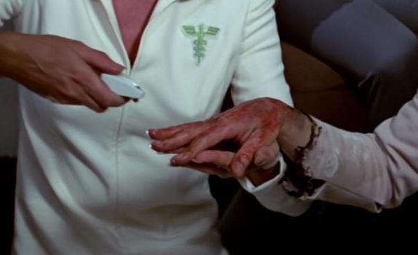 In the mid-2270s, as the USS Enterprise was struck by a plasma energy bolt fired from V'ger, Lieutenant Chekov suffered severe burns to his right wrist and hand when his weapons console overloaded. Using a spray applicator, Doctor Christine Chapel applied plasti-skin to his wounds. (Star Trek: The Motion Picture)