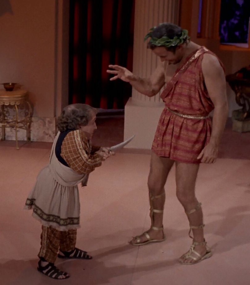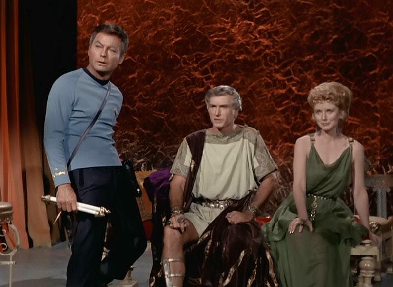 - The togas worn by Shatner and Nimoy in this episode were designed by William Ware Theiss, and were later put up for auction in December 2018. [2]