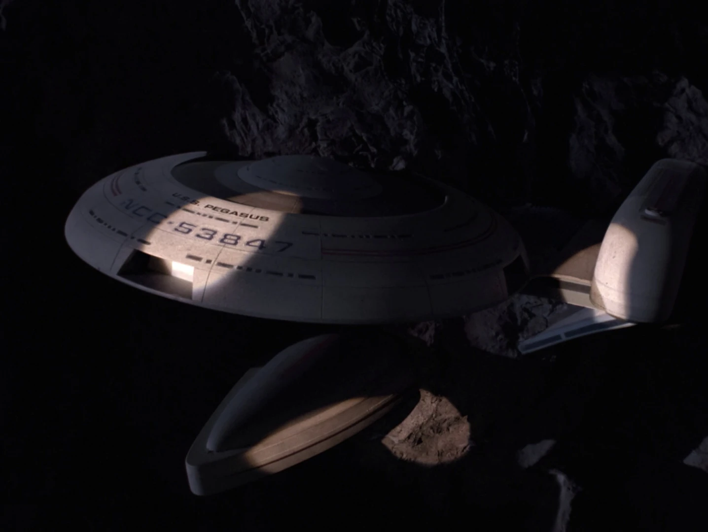 The Galaxy-class began development in the 2350s at Utopia Planitia Fleet Yards. Numerous technologies implemented on Galaxy-class starships were tested aboard earlier prototype vessels, including the Oberth-class USS Pegasus, in the 2350s. The warp core was designed at Outpost Seran-T-one on stardate 40052 by some of the most brilliant engineering minds in the Federation, including Leah Brahms of the Theoretical Propulsion Group.