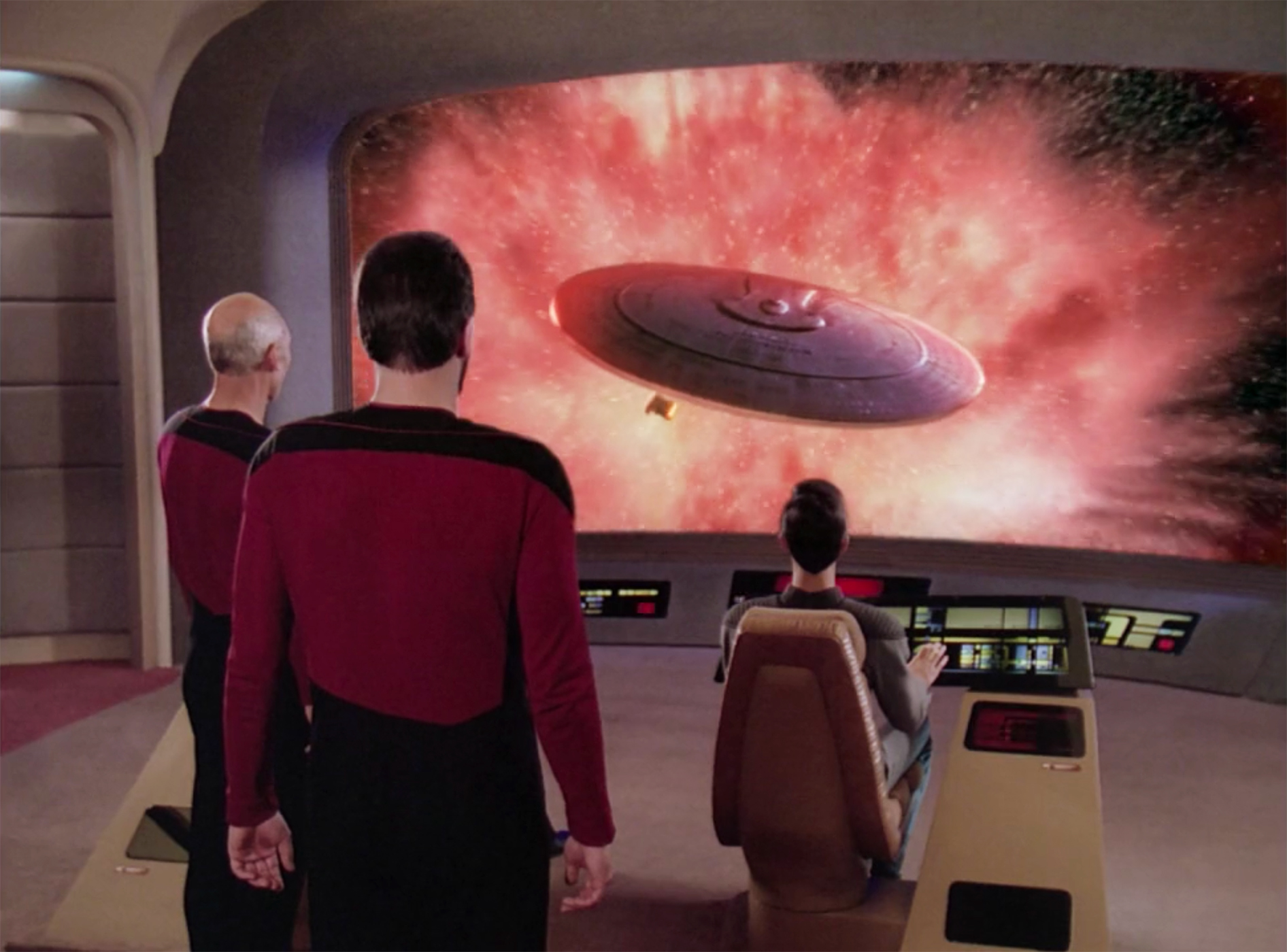 The Galaxy-class saucer section was also intended to act as a temporary means of escape for nonessential and civilian crewmembers while the secondary hull dealt with a dangerous situation. It operated independently of the secondary hull and reconnected with its drive section after the resolution of a crisis. For this reason, it contained duplicate systems in the stardrive section, including a large shuttlebay/cargo bay complex, impulse engines, and bridge. (TNG: "Encounter at Farpoint")