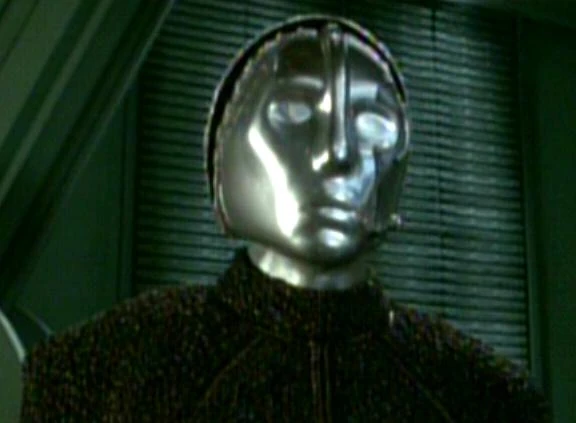 - Even though the robot costumes were flexible, wearing the suits involved several other problems. Rick Worthy recalled that the reason he found difficulty with his performance in this episode was "because I couldn't see anything inside the robot suit." He further explained, "They put two little slits where I could barely see out. I had to practice where my marks were on the floor and when the cameras rolled I had to force myself not to look down." [3] "Imagine trying to fit inside a mannequin, because that's what it felt like," remarked Worthy. "Although the outfit allowed me to move about fairly easily, it was restrictive in terms of being able to breathe properly. There were always at least two costume assistants around to help me fit into the outfit and it took probably 15 minutes for me to get everything on. Just before the cameras began to roll I'd take a really deep breath and they'd put the mask on," Worthy remembered, laughing. "The hardest part was that I couldn't see! There were very tiny slits in the mask that I could look through but it was [still] tricky [....] My greatest challenge was just being able to hit my mark so that I'd be standing in the right place," an amused Worthy recalled. (TV Zone, issue 126, p. 28)