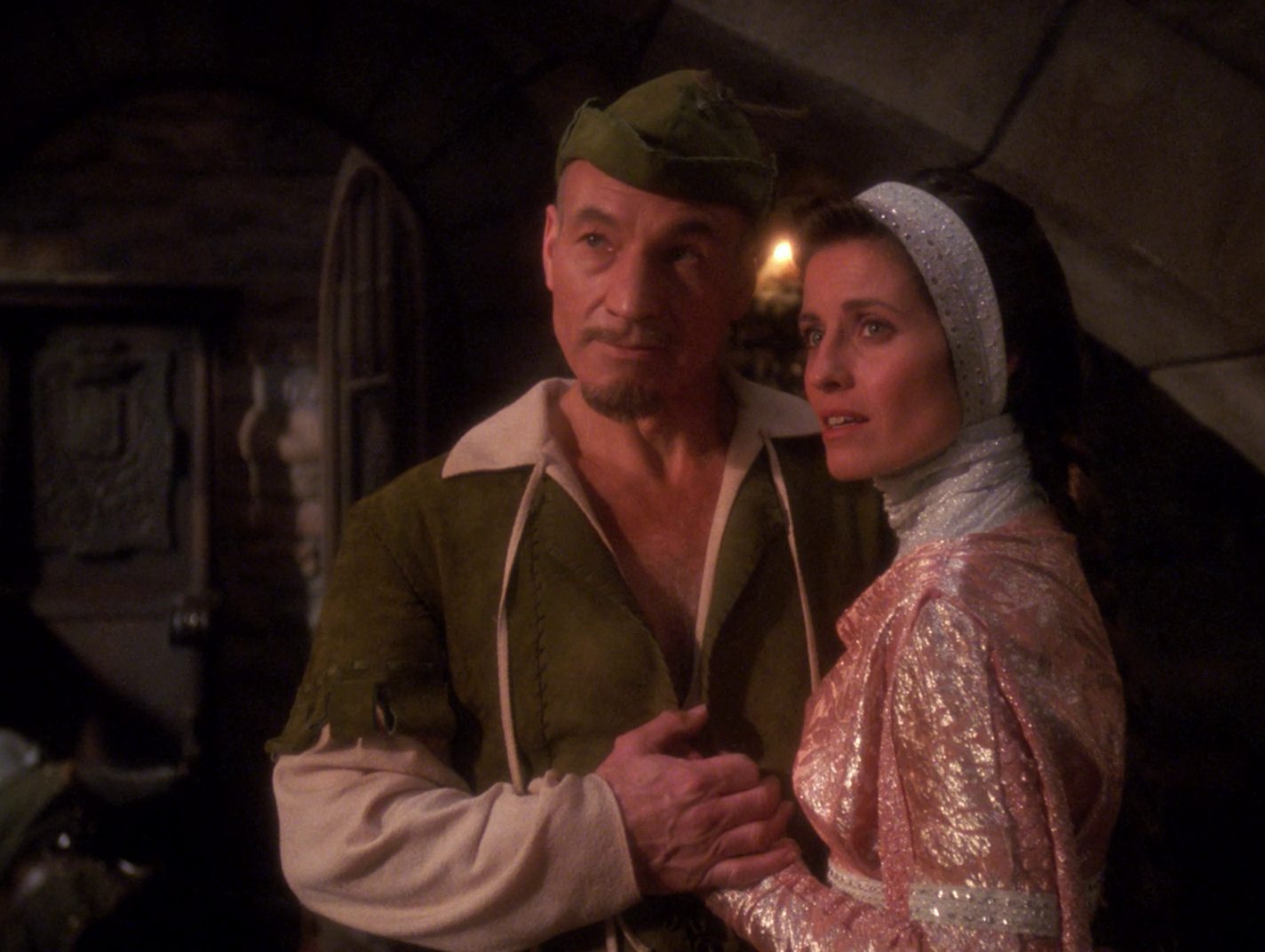 - According to Michael Piller, "While we were trying to break it, someone said let's throw these characters into one of the classic love stories." Ira Steven Behr had initially proposed setting this episode at Camelot. On Behr's suggestion, Piller changed it to Sherwood Forest to capitalize on the popularity of Robin Hood at the time, thanks to the release of Robin Hood: Prince of Thieves, in which Christian Slater performed. (Star Trek: The Next Generation Companion, 2nd ed., p. 161; Captains' Logs: The Unauthorized Complete Trek Voyages, p. 219)