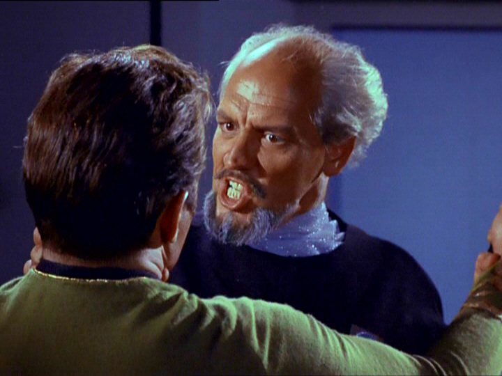 Prefect Jaris possessed by Redjac attempting to kill James T. Kirk