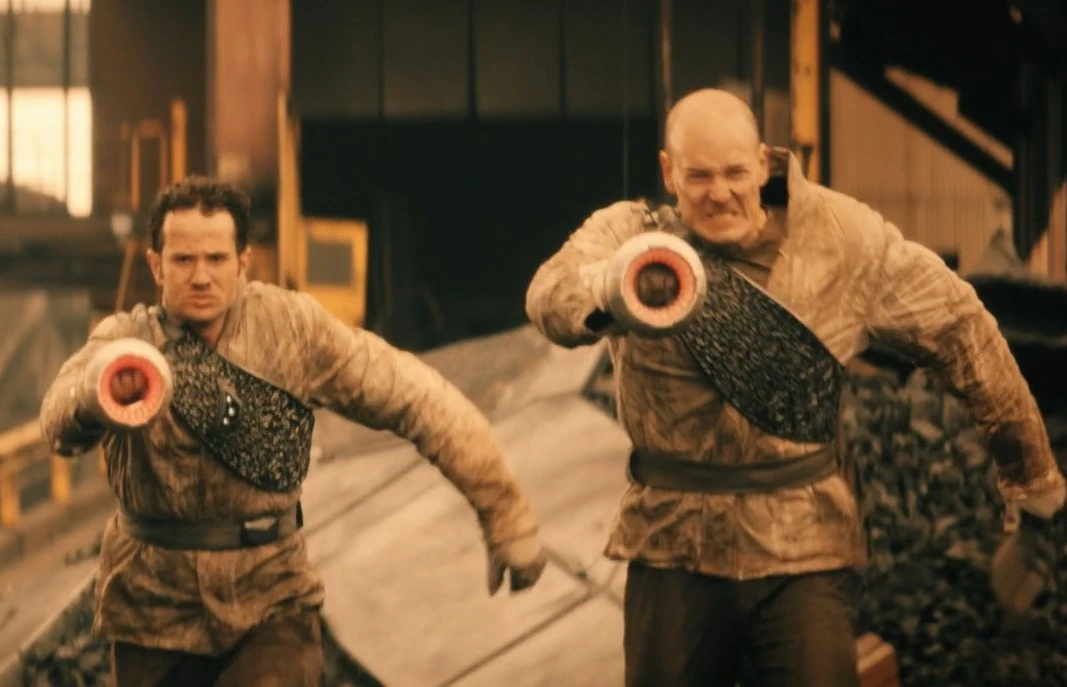 Regulators, wielding hand cannons, chasing escaping prisoners on Hunhau