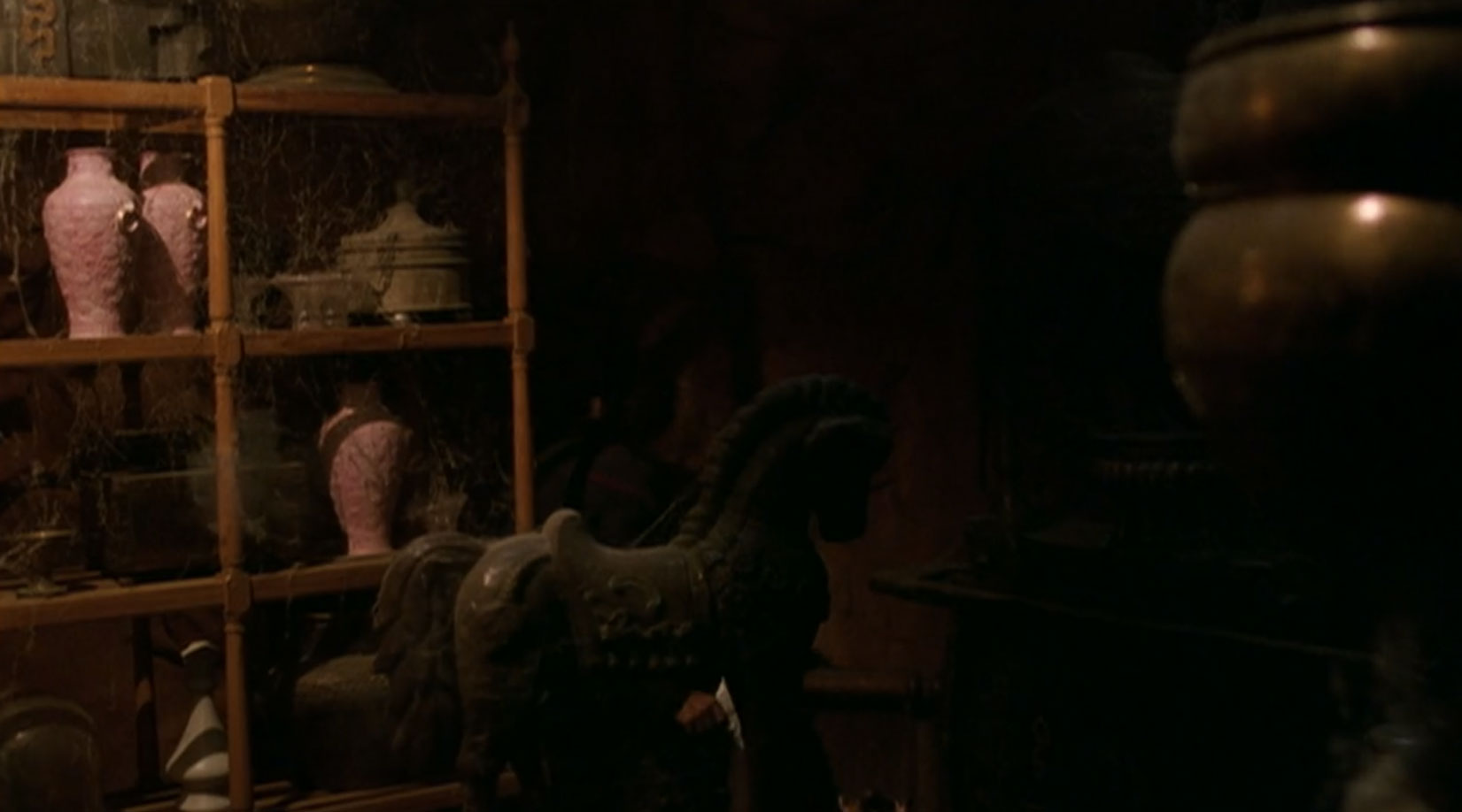 The reliquary at the monastery featured several shelves filled with vases, statues, sculptures, and other artifacts. Behind a tapestry, it also featured a shiny round-shaped metal door which marked the entrance to the secret listening post operated by the Vulcans. (ENT: "The Andorian Incident")