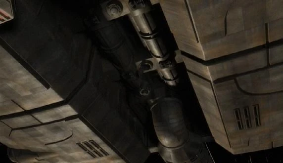 The layout was composed of a primary spinal section, with six cargo bay sections, three on each side. Inside, the cargo bays were all separated from each other, connected by the central core of the ship. Each cargo bay had access to a series of Jefferies tube-like access ways, and partial access to internal sensors. Access to internal sensors could also be achieved inside one of the access tubes, which also led to the shuttlebay, which contained two one-man escape pods.