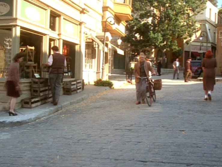 This settlement consisted of a Nazi headquarters (located at no 115), which was surrounded by guards and contained the German radio transmitter, and Le Coeur de Lion, a restaurant run by Katrine which acted as a front for the local French Resistance cell. There were also shops advertising the sale of lingerie, chocolate (as chocolats), perfume (parfums), and tobacco (tabac), a bakery (boulangerie), a locksmith (serrurier), and a shop called l'Odalisque. There was a wine seller (marchand de vins) who also specialized in liqueur, and at least one cafe, called Chez Renée. There was also a cinema, Cinéma Mystère, and a building called Parti Français National Socialiste.