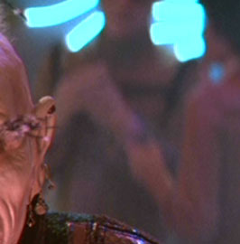 This female alien with pointed eyebrows visited the San Francisco bar the same time as Doctor McCoy. She later talked to a male bar patron. (Star Trek III: The Search for Spock)