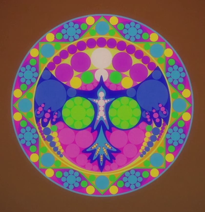 Lieutenant O'Connor had created a sand mandala out of colorful sand in his quarters on the USS Cerritos, in preparation for his ascension. The mandala depicted the act of ascension, with the ascendee and a bird being focal. The design also featured ambiguous imagery to hide a giant koala.