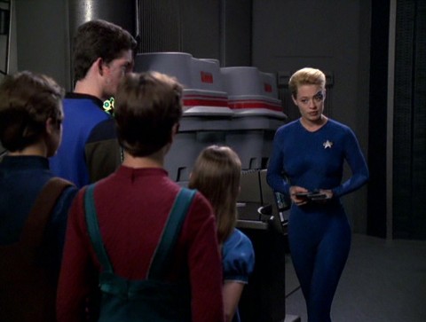 Janeway tries to help Seven remember her life before being assimilated