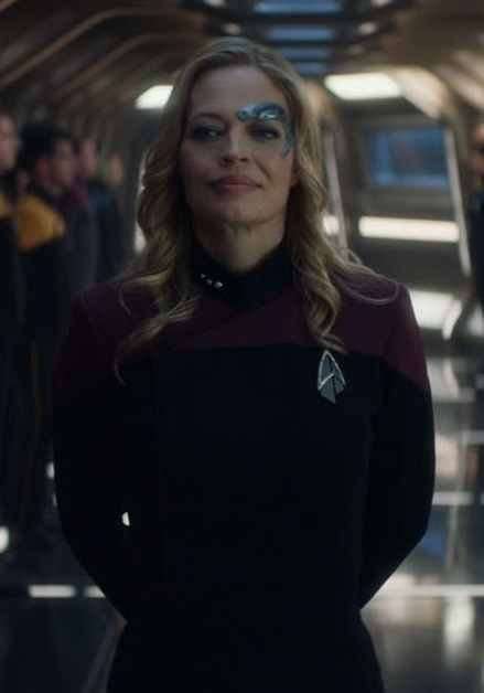 Keyla Detmer's party outfit seen in the Star Trek: Discovery episode "Magic to Make the Sanest Man Go Mad" was inspired by Seven of Nine. (AT: "Magic to Make the Sanest Man Go Mad")