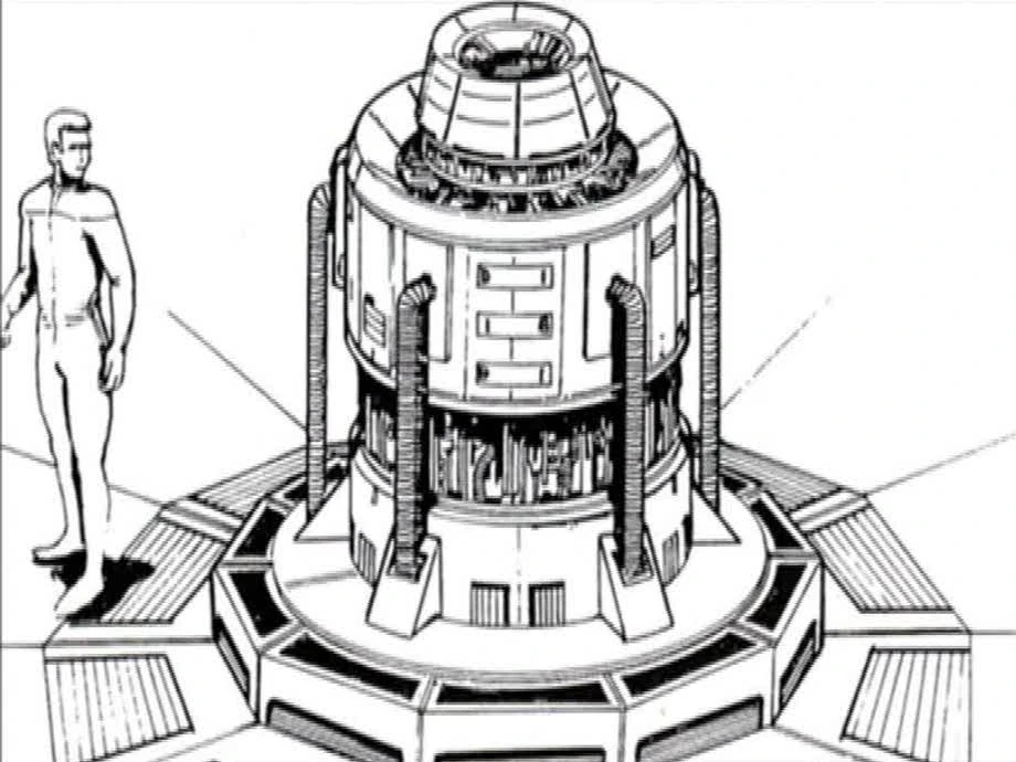 They return to the center of the city and bring Colyus to the reactor. Dax explains she knows what happened to the people. After being able to use a console to make his cloak disappear and then reappear, she explains the situation. It's not a reactor; it's a hologenerator. It creates an omicron field and manipulates it to create matter. Everything in this village, his cloak, and the people, are made up of these particles. The component that controls the field is breaking down, and people are subsequently being lost.