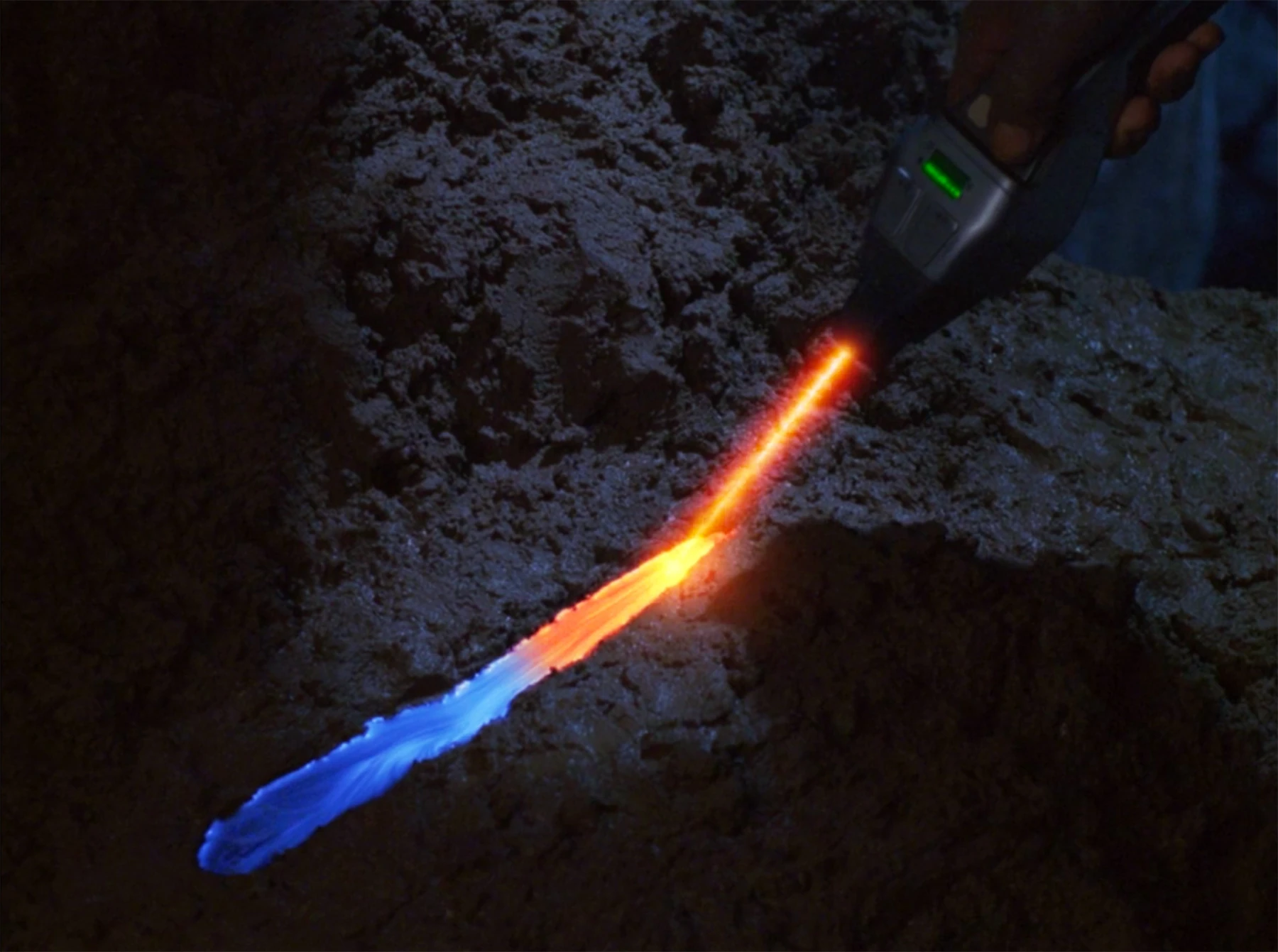 In 2366, while on the planet Galorndon Core, Geordi La Forge melted chunks of silver ore with his hand phaser, fashioned them into a pair of spikes, and used them to make a difficult climb out of a pit. (TNG: "The Enemy")