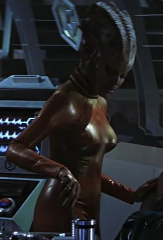 Female Tarlac and Ellora were subjugated into surgical and servant work, and wore bronze bodysuits with fabric collars and high heels. (Star Trek: Insurrection, VOY: "Life Line")