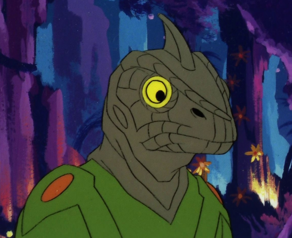 Sord's species was dark green, scaly skin, with a large crest running back from the front of their heads at the mid-line of the skull. These digitigrades possessed a tail and clawed hands (with three fingers and a thumb) and feet (with three toes) and were exceptionally strong, physically. They were not built for vertical climbing.