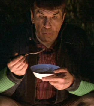 During a shore leave-camping trip to Yosemite National Park, in 2287, McCoy warmed up a batch of his famous beans over the campfire. Spock was impressed by their taste, noting that they were "surprisingly good", but that he was not familiar with one of its flavorings. This was revealed to Spock to be the "secret ingredient", which was Tennessee whiskey. (Star Trek V: The Final Frontier)