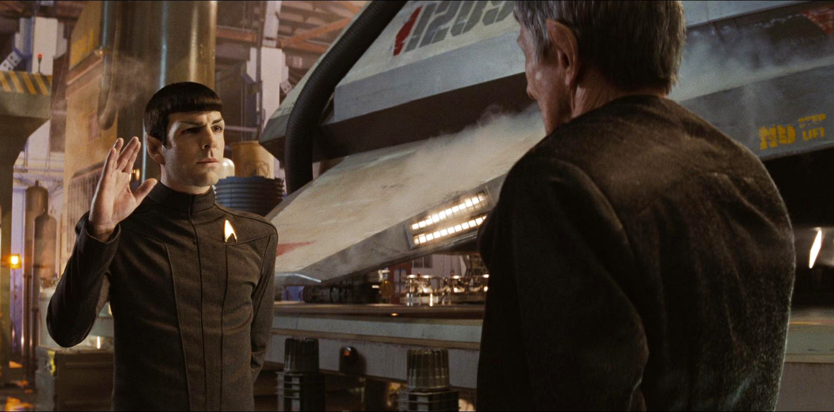 Casting Leonard Nimoy as an elderly version of Spock in the film Star Trek gave irate fans pause, caused them to stand down, and even won them over. (Empire, issue 234, p. 126) However, William Shatner has been disapproving of how Spock is portrayed in that movie and its sequel, Star Trek Into Darkness, commenting, "I thought the two Spock appearances were gratuitous. J.J. [Abrams] wanted to pay homage to Spock I guess, but he didn't offer anything to the plot […] I told Leonard, 'You know that you're old when you go back in time and you're still old.'" ("Empire Presents 50 Years of Star Trek" supplement, p. 15)