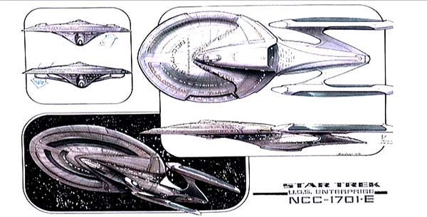 - USS Enterprise (NCC-1701-E) dedication plaque: Arp, Tom; Baden, Shawn; Barcroft, Lloyd; Berman, Rick; Betts, Benjamin; Blymyer, Pat; Braga, Brannon; Brown, Judi; Causey, Tom; Cremona, Rosemary; Delgado, Ricardo; Dolan, Bill; Drexler, Doug; Dwyer, John M.; Eaves, John; Everton, Deborah; Fleck, Jerry; Frakes, Jonathan; Frazee, Terry; Fredrickson, Anthony; George, Bill; Gobruegge, Les; Goodson, John; Hawkins, Bill; Hornstein, Marty; Jefferies, Matt; Josselyn, John; Juday, Penny M.; King, Linda; Knoll, John; Lauritson, Peter; Leasure, Frank; Leonetti, Matt; Luckenbach, David; Markart, Larry; Mickelberry, Nancy; Moore, Ronald D.; Musso, Joseph; Okuda, Denise; Okuda, Michael; Propulsion Systems; Research and Development; Roddenberry, Gene; Rossi, Dave; San Francisco Yards; Schwab, Debbie; Shaw, Sarah; Spaceframe Development; Starfleet Command; Sternbach, Rick; Systems Management; Takemura, David; Toussieng, Yolanda; Van Over, James; Westmore, Michael; Wilkinson, Ron; Wilson, Dean; Yard Engineer; Zimmerman, Herman