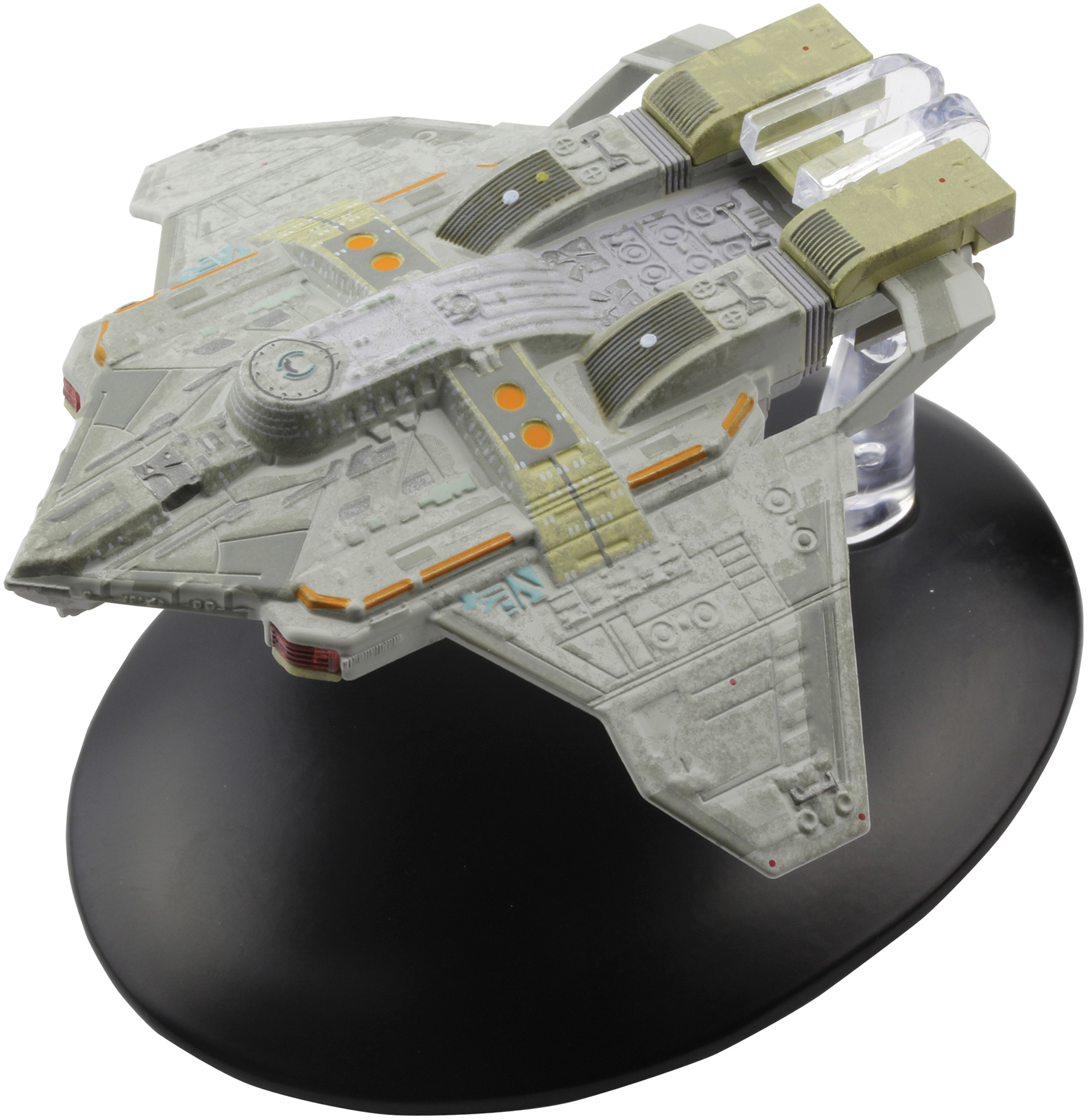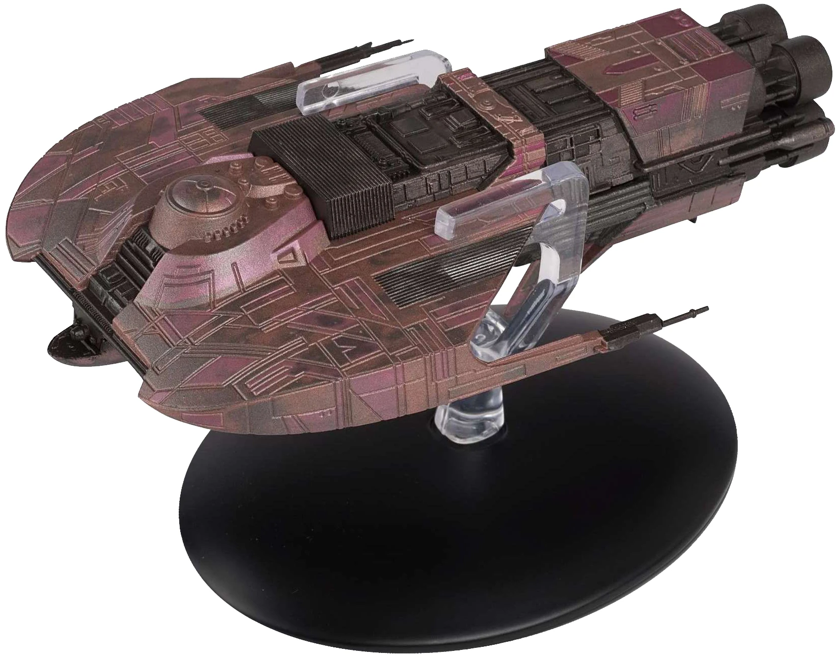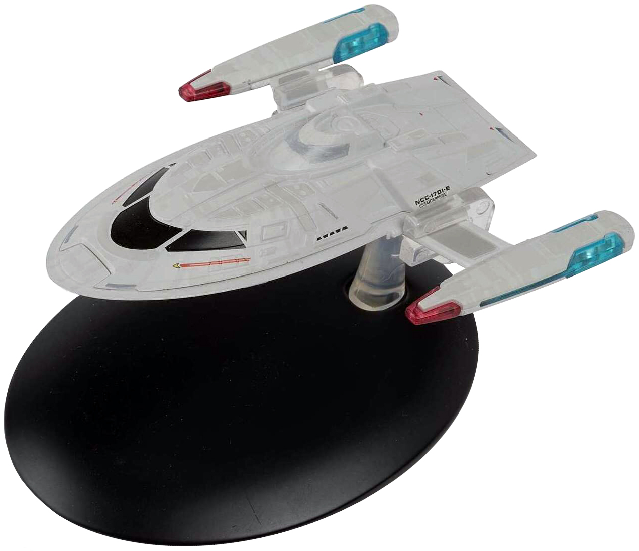 Each fortnightly issue included a hand-painted [1]ABS and die-cast metalscaled replica of a starship from the Star Trek universe. Notably, an unparalleled variety of ship designs have been produced as display models for this line, many for the first time, beyond the scope of all other mass-production manufacturers. Unlikely to be surpassed anytime soon, Eaglemoss' Star Trek starship model line had become by far the largest starship model line of any entertainment media franchise ever released by a single company – especially when also taking the near-identically executed follow-up Discovery, Online, Universe, and Lower Decks spin-off/sister collections into account.