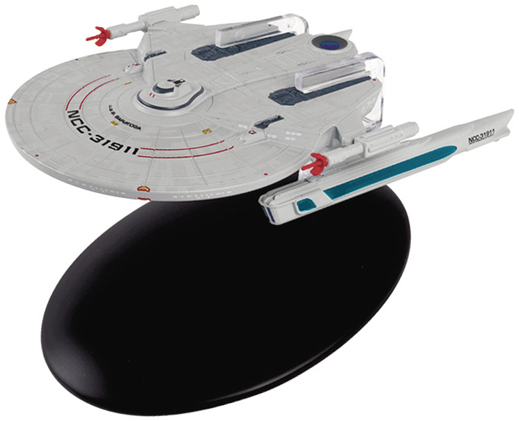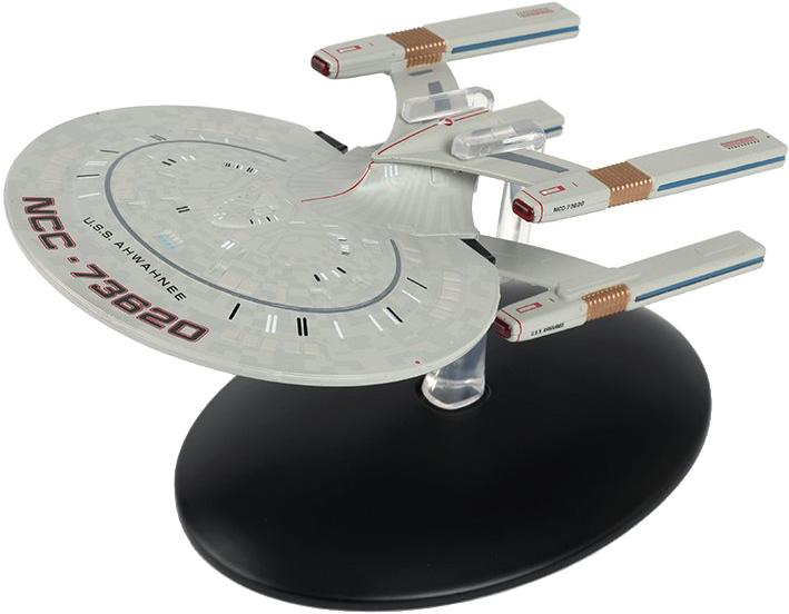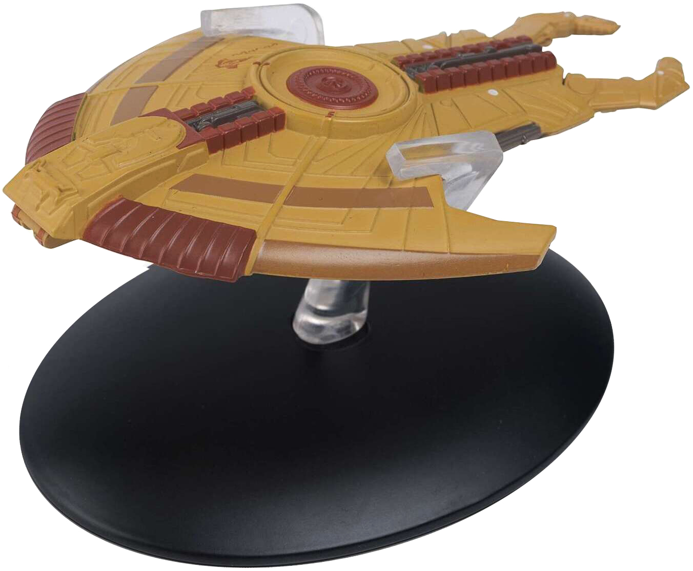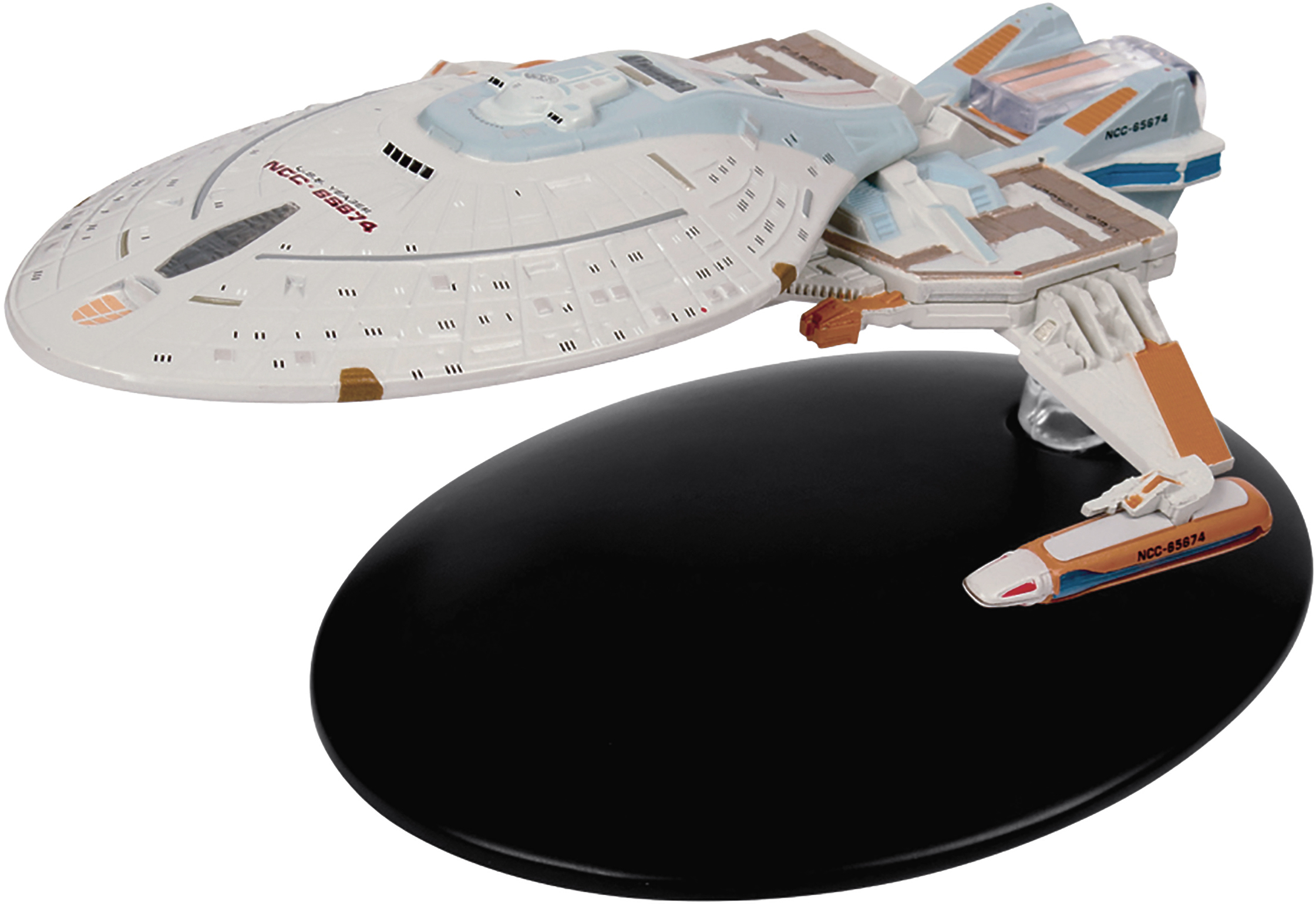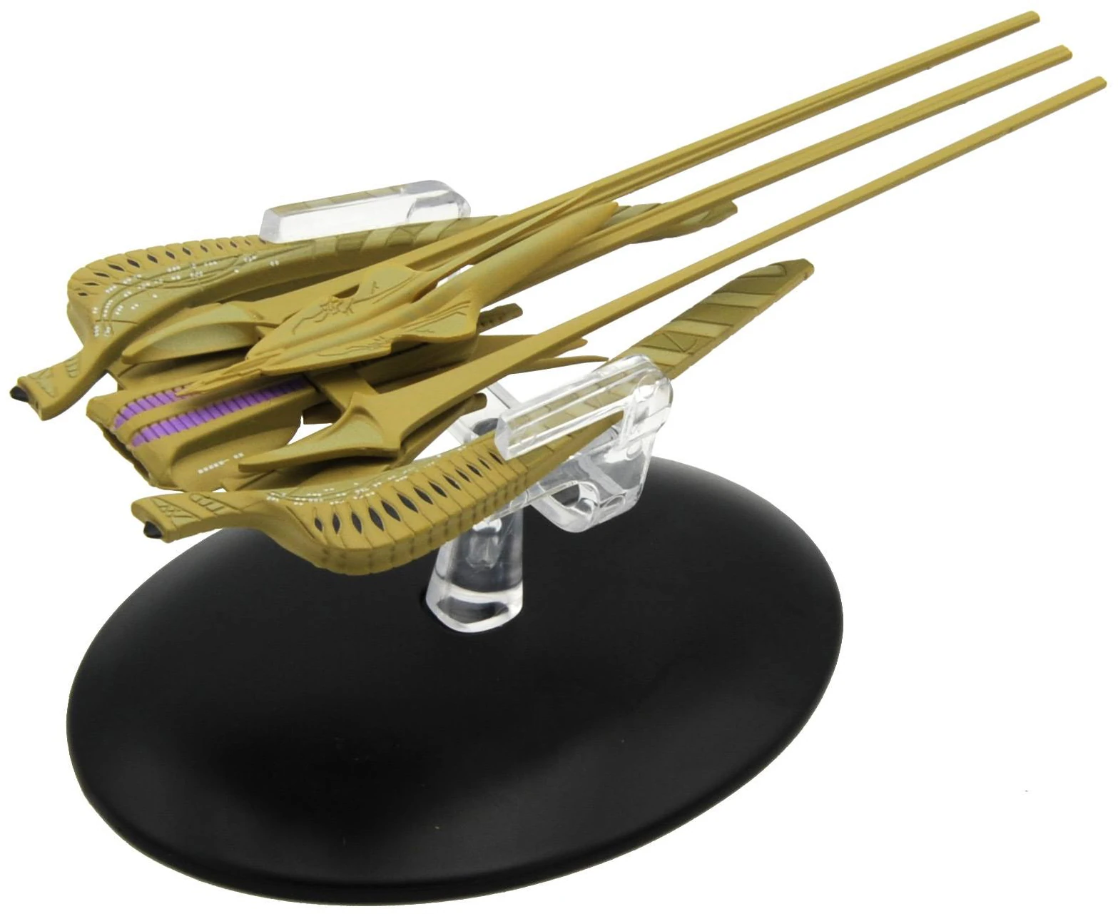 Each fortnightly issue included a hand-painted [1]ABS and die-cast metalscaled replica of a starship from the Star Trek universe. Notably, an unparalleled variety of ship designs have been produced as display models for this line, many for the first time, beyond the scope of all other mass-production manufacturers. Unlikely to be surpassed anytime soon, Eaglemoss' Star Trek starship model line had become by far the largest starship model line of any entertainment media franchise ever released by a single company – especially when also taking the near-identically executed follow-up Discovery, Online, Universe, and Lower Decks spin-off/sister collections into account.