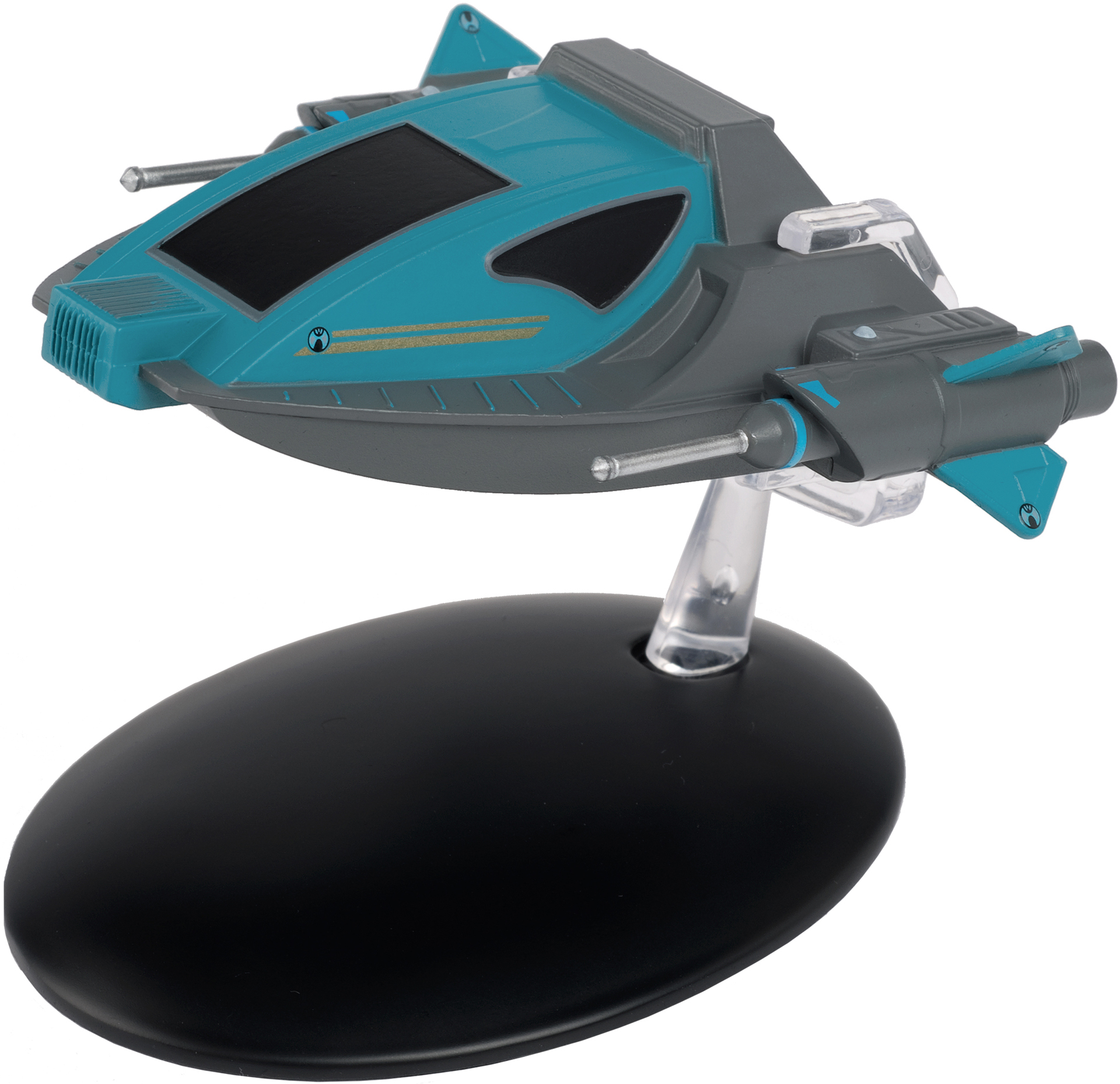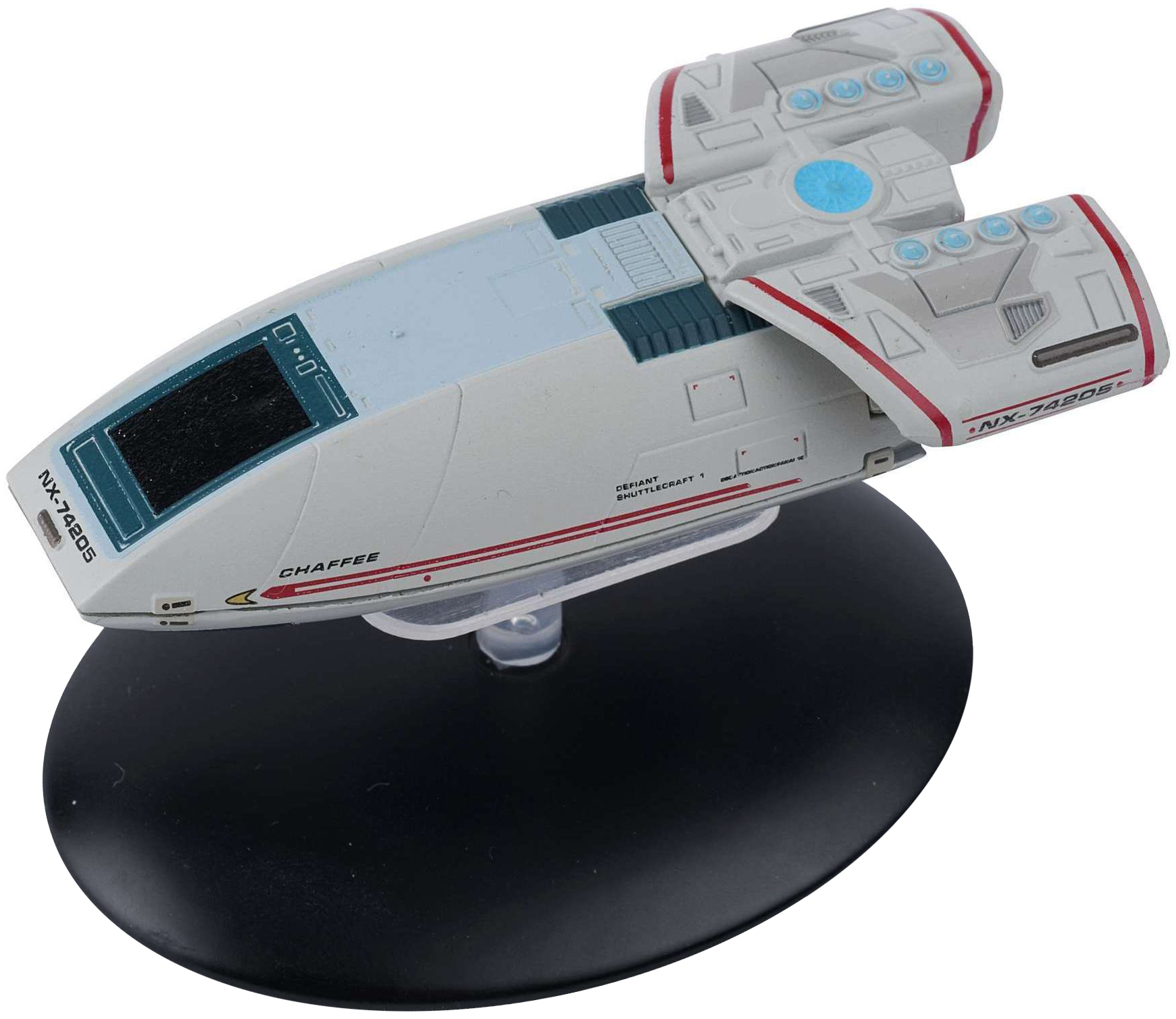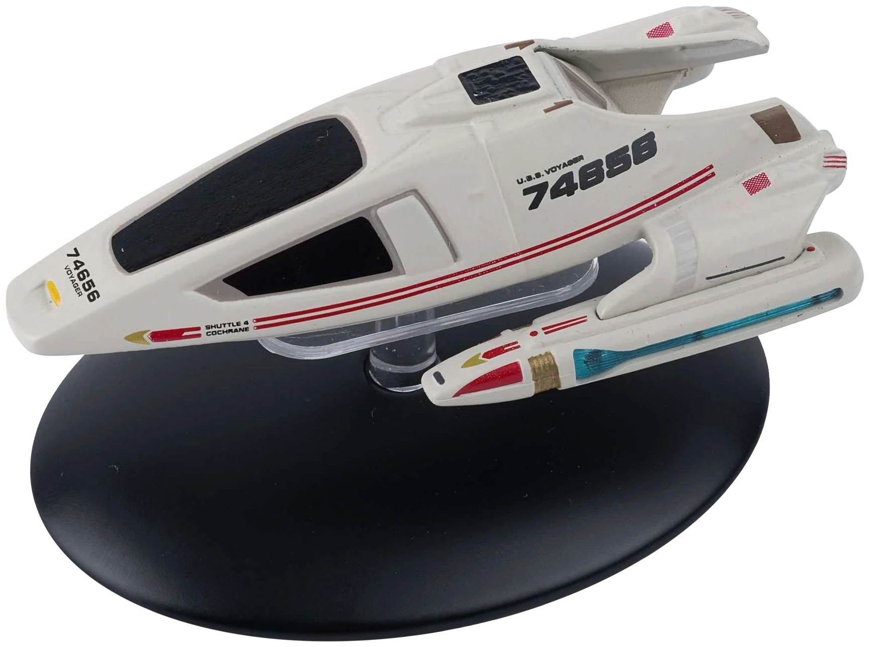 Shuttlecraft models are smaller than the other releases, are made of metallic resin, include a small standardized stand, and are individually packaged within each four-pack box. Presently, shuttle issues are only available for purchase in four-packs, in all markets.