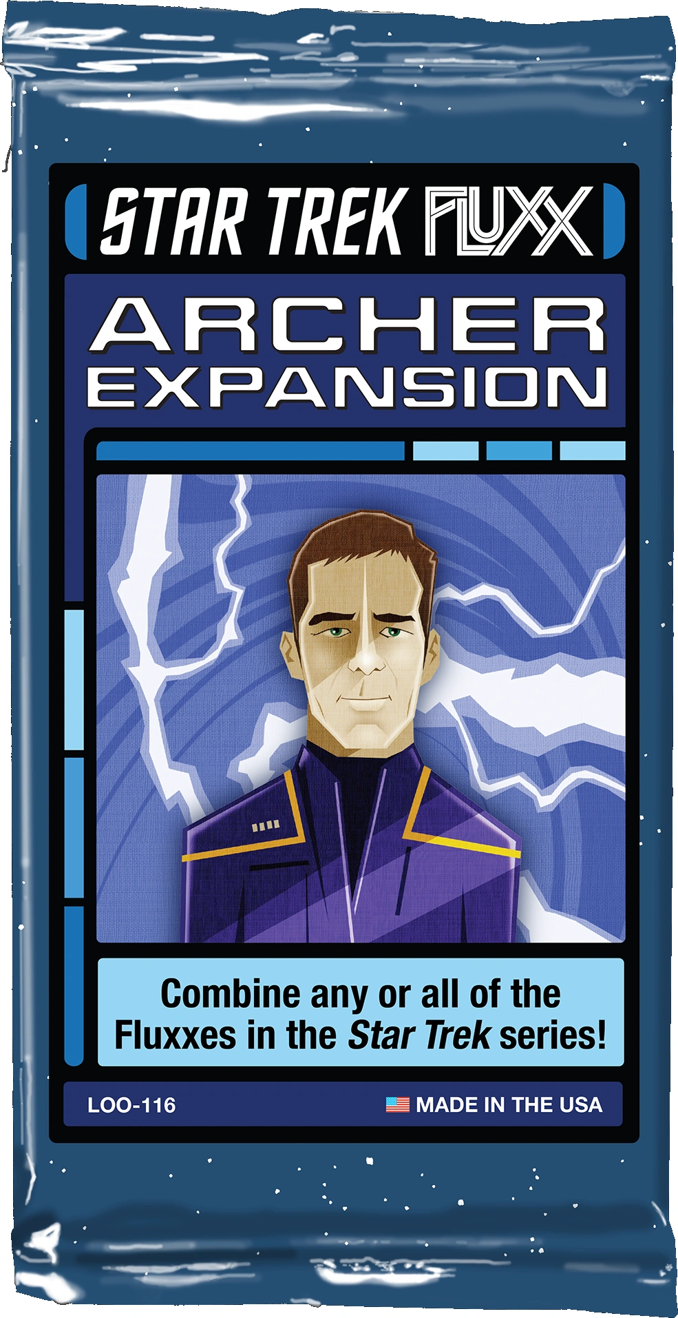 Star Trek Fluxx: Archer Expansion is a card game expansion pack produced by Looney Labs in conjunction with, and under license from, Gale Force Nine. It was released alongside the Star Trek Fluxx: Porthos Expansion in late 2021.
