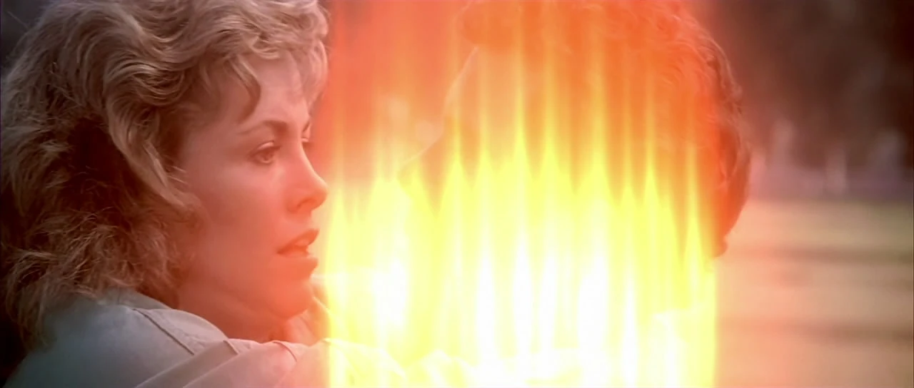 Back at Golden Gate Park, Taylor tells Kirk that was the briefest dinner she's ever had and the makes it clear she doesn't believe Kirk's story at all. Kirk asks what the whale's radio transmitter's frequency is, but Taylor refuses to tell him, citing that it's classified information. Kirk then tells Taylor that he is here to take two humpbacks to the 23rd century and if he has to do so, he will go to the open sea to get them but he'd much rather have hers as it'd be better for him, for Taylor, and for the whales. Gillian once again implores Kirk to tell her who he really is, but he ignores the question and asks her to think about this but not to take too much time and if Gillian changes her mind about helping them, he'll be right there in the park. As Taylor drives off, Kirk walks toward where the Bounty is parked and Taylor hears the transporter beam taking Kirk aboard and sees the light in the corner of her eye. She looks back and sees Kirk gone and drives on, puzzled.