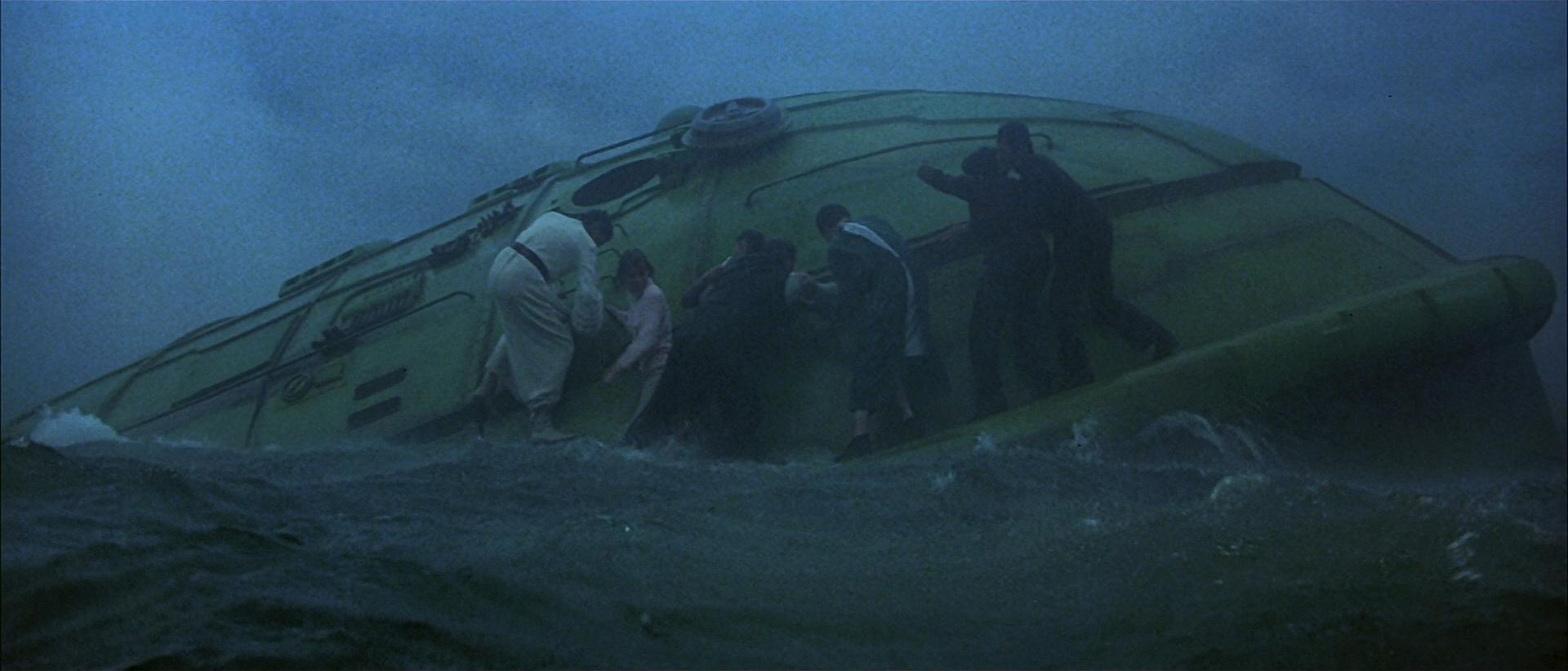 Everyone wakes up again and Kirk asks if the thrusters fired. Spock reports they did and Kirk wonders where they are. Just then, he hears the drone of the probe as the Bounty begins to lose power. As the ship's systems shut down, the Bounty plunges through the Earth's atmosphere and when McCoy wonders where they might be Kirk can only tell him "Out of control and blind as a bat." At Starfleet Command, the original transmission from Kirk to Starfleet fades. Cartwright calls for it to be restored just as the window shatters as it did before. This time Sarek points at something which is revealed to be the Bounty, and Cartwright notes it's heading right for the Golden Gate Bridge. The Bounty sails under the bridge and crash lands in San Francisco Bay. Kirk orders the hatch blown. He looks outside, sees it's the right place and now the task at hand is to get the whales out before the Bounty sinks. Kirk orders everyone to abandon ship. When he can't reach Scott, Kirk runs toward engineering after telling Spock to ensure the safety of everyone else. Kirk runs down toward the whale tank and manages to force the door open, and pulls Scott and Taylor out of the tank area which is almost completely submerged. Taylor notes the whales are trapped and if they're not freed, they'll drown. Scott says the bay doors have no power and that the explosive override is underwater. Kirk sends them out through the bridge hatch and he swims underwater to the explosive override and pulls it open, knocking the hull of the Bounty open and allowing Kirk and the whales to swim out of the ship. Kirk reaches the surface just in time and is pulled up to safety by Spock and Taylor. After a few moments the whales are seen swimming. Meanwhile, the probe keeps calling for the whales and everyone at Starfleet just watches and waits as the power completely fails.