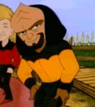 A segment of Animaniacs titled "Star Truck" featured Yakko, Wakko, and Dot being beamed aboard the original Enterprise, (albeit done up with monster truck wheels, as per the cartoon's title), claiming the Starfleet delegates who were supposed to be there were "really busy" (at which point you see two Andorians, one in a TOS Starfleet uniform, the other in a TOS film tunic, sitting on a couch playing video games), and wreaking havoc among the crew. (The characters are clearly genuine fans of the show, as upon meeting "Kirk", they ask to "go back to New York in the 1930s," where he could "fall in love with Joan Collins," who would then die, "go lookin' for Mr. Spork's brain," or Harry Mudd, or Roger Mudd, and Wakko asks to "swim with the whales.") Gags included Wakko introducing Scotty to doughnuts (thus causing him to become portly and have a pink frosting mustache), Spork mind-melding with them in sickbay, and then saying their trademark "Hel-lo Nurse!" line when Uhura enters, and when Khan appears, Yakko comments, "Ooooh, it's Ricardo Montalban and his big plastic chest!" (an obvious parody of the fan rumor that Montalban's chest in Star Trek II: The Wrath of Khan was a prosthetic appliance, and not his actual physique). Dot later proposes to distract Khan's crew "with a fancy fan dance", riffing on Uhura's dance from Star Trek V: The Final Frontier. When the Warners take control of the ship, Yakko takes the command chair and sits on a tribble.