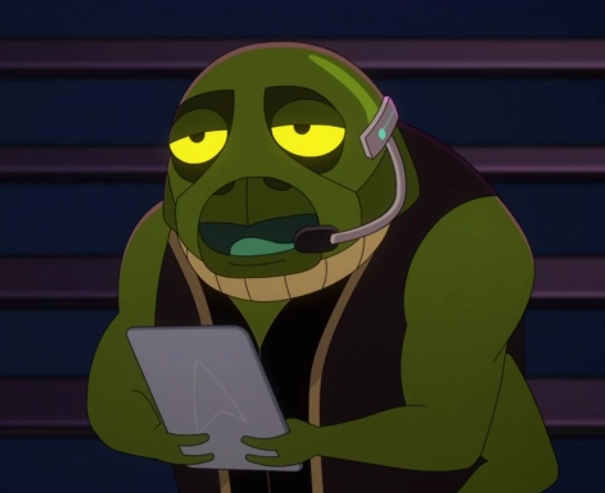 She worked at a dive bar located on Starbase 25, where she met both James T. Kirk and Spock, and over a century later, Beckett Mariner and Brad Boimler. (LD: "An Embarrassment Of Dooplers")