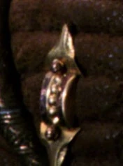 Golden insignia were worn on the right side of the uniform vest; two different kinds were observed: captains and senior officers wore badges with rounded ends, while young Talarians wore badges with pointed triangular ends. Additionally, only captains wore a second golden insignia, consisting of three diamond-shaped metal pieces positioned centrally on the chest. (TNG: "Suddenly Human")