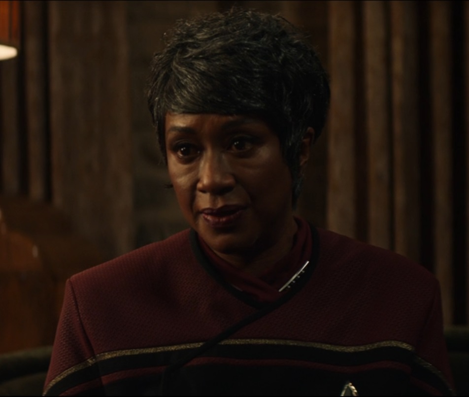 - One of the placards features the USS Leondegrance, commanded by Captain Nyota Uhura. Previously, the Leondegrance was mentioned on a certificate seen in the Starfleet Museum Quantum Archives of Jean-Luc Picard, indicating that Picard served on the ship as a cadet. This connection might be a nod to the origins of Star Trek: Picard itself, which started out as a Star Trek: Short Treks episode in which an elderly Picard, portrayed by Patrick Stewart, muses on a time during which he was mentored as a young Starfleet officer by Uhura, portrayed by Nichelle Nichols. Although the production of the Short Treks episode ultimately did not come to pass, it led to the development of Picard. [9]