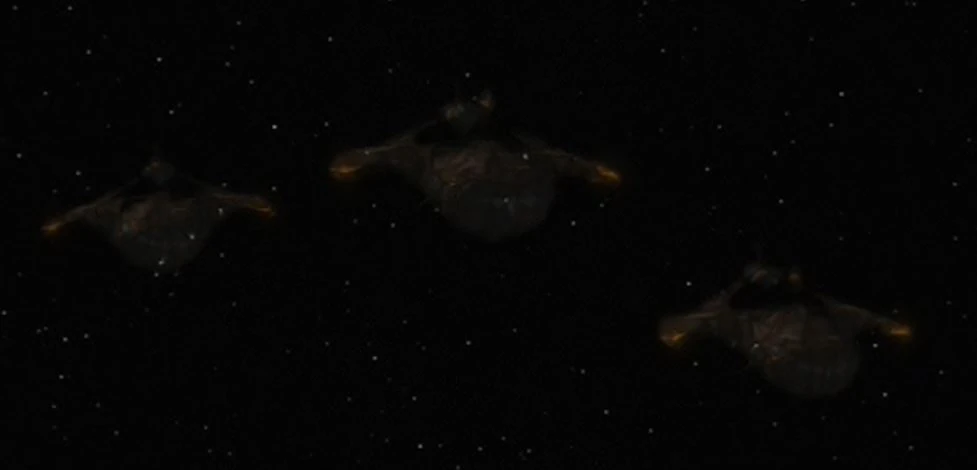 The USS Voyager passes by the nebula but hidden within it, observing Voyager, is a small ship. One of the aliens, Phlox, is conducting scans of Voyager when another, presumably his superior, notices his actions and angrily reminds him that the ship was designated as an 'unacceptable risk', meaning attacking her has been deemed to be too risky. He reminds Phlox that the ship is in none of their databases and they have been unable to scan her interior. Due to these facts they have no idea if they can engage and defeat the ship and the Hierarchy never acts on a potential target without first getting this information.