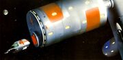 By that time Taylor had brought in Andrew Probert to help him out with the design work, "All of those models Andy Probert and myself designed. I drew the original blueprints myself and I had those blueprints before Andy came on at all. Then Andy came on and he worked on some more details and he made some suggestions and we went back and forth exchanging ideas." [2] Eventually, the design of the pod evolved out of another requirement of Roddenberry to have the orbital office complex designed as a cluster of many offices. "Part of his reasoning for that was to provide a cinematic surprise when one of the smaller offices broke away from the others, becoming a small space ship called, in the script, a "Travel Pod". This was the small engineer's inspection vehicle that Scotty would use to ferry Kirk over to the Enterprise for his (and our) close inspection of the new ship. My early "pod" concepts were very close to the office shapes, as required, but when Roddenberry introduced "further requirements"–i.e., made changes–it evolved to what was eventually shown on screen.", co-designer Probert explained. (Starlog photo guidebook Special Effects, vol. 5, p. 90) On his thoughts behind his design work he later elaborated: