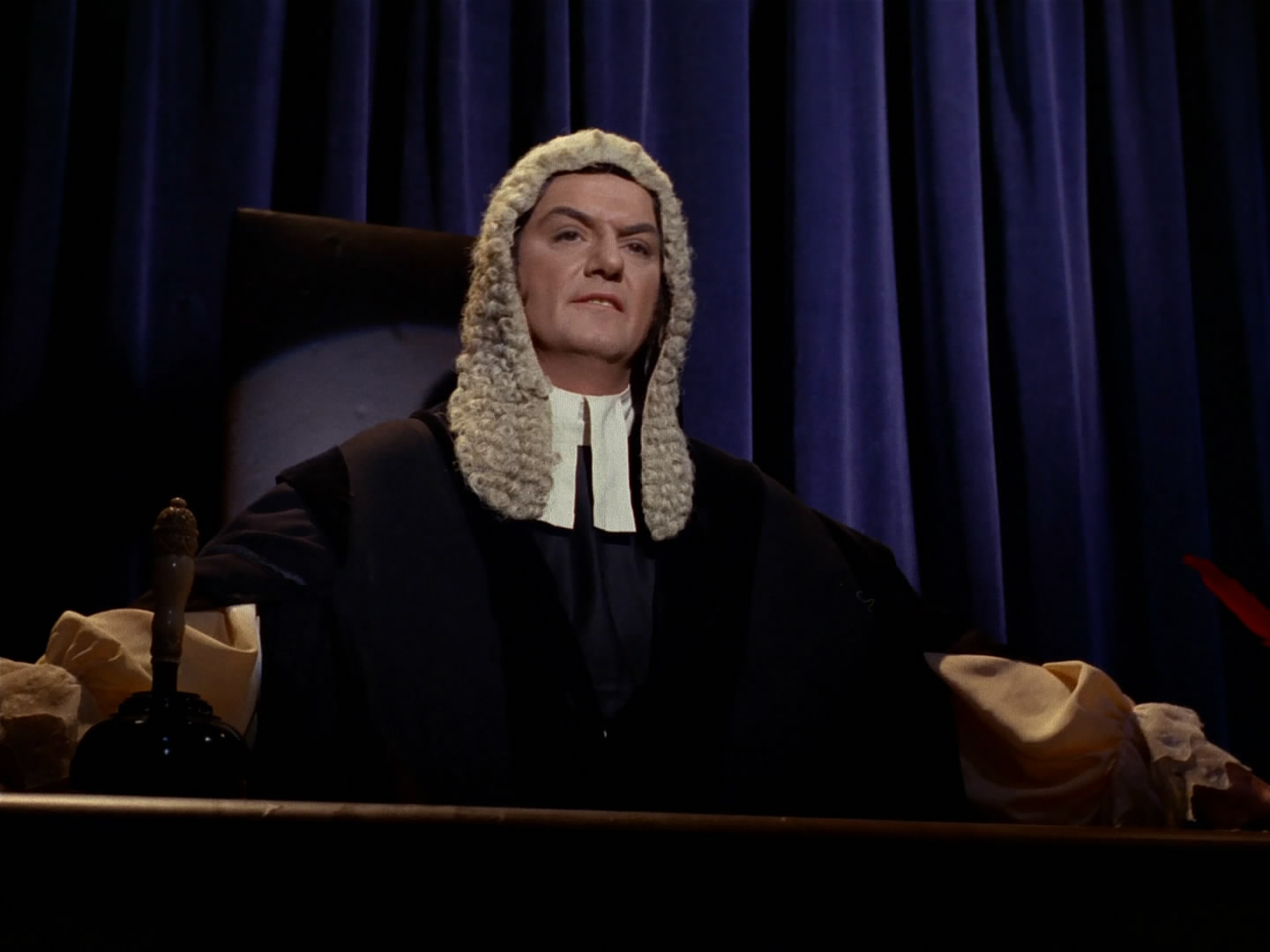 William Campbell initially complained about the judge's wig that Trelane was to wear in one particular scene, as it was originally an extremely curly and full French period wig. Campbell not only pointed out that the wig wasn't the right one but also admitted that the choice of wig would affect his performance. Gene Coon agreed that he was right about thinking the wig needed to be the right kind, so it was corrected thereafter. [5]
