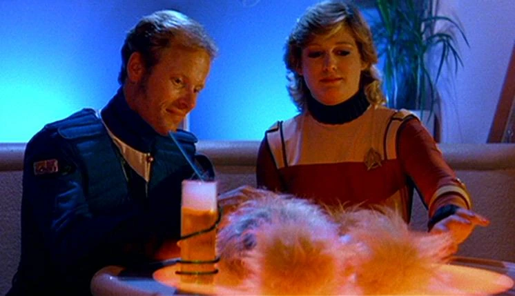 In 2268, Cyrano Jones brought a small number of tribbles to Deep Space Station K-7 to trade. He gifted a single tribble to Federation officer Nyota Uhura, hoping that an attractive woman's possession of the creature would enhance its popularity. Uhura brought the tribble aboard the Starship USS Enterprise, where it quickly multiplied. The tribbles also proliferated on the station, where they were instrumental in foiling a Klingon plan to poison a shipment of quadrotriticale intended for Sherman's Planet, when those that had fed on the grain were found dead. Despite tribbles being known to Starfleet personnel for at least a century, including being kept on at least three of its vessels, the mechanics of tribble anatomy and reproduction were still not widely known at this time, with Dr. Leonard McCoy rediscovering this information in his investigation of the animals' proliferation aboard K-7 and the Enterprise; several other Enterprise crewmembers, such as Uhura, also indicated having never heard of them before. (TOS: "The Trouble with Tribbles")