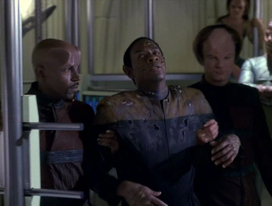 - Many of the alien make-ups seen in this episode were reused from background characters in Deep Space Nine.