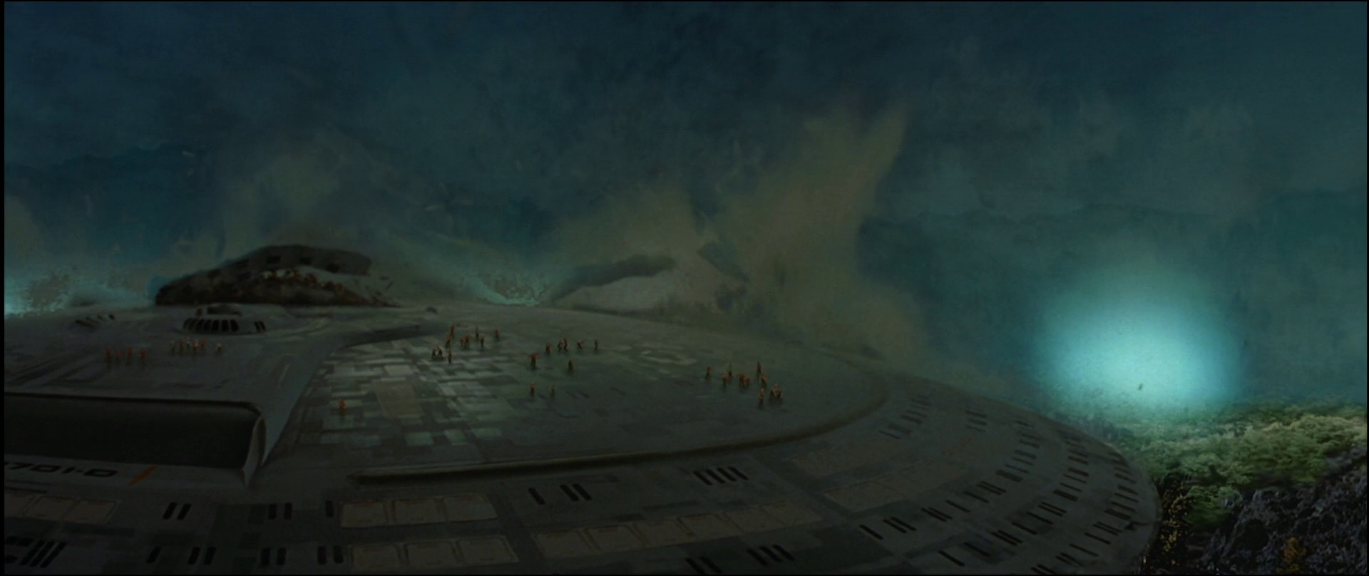 The saucer section of the Enterprise grinds to a halt on Veridian III