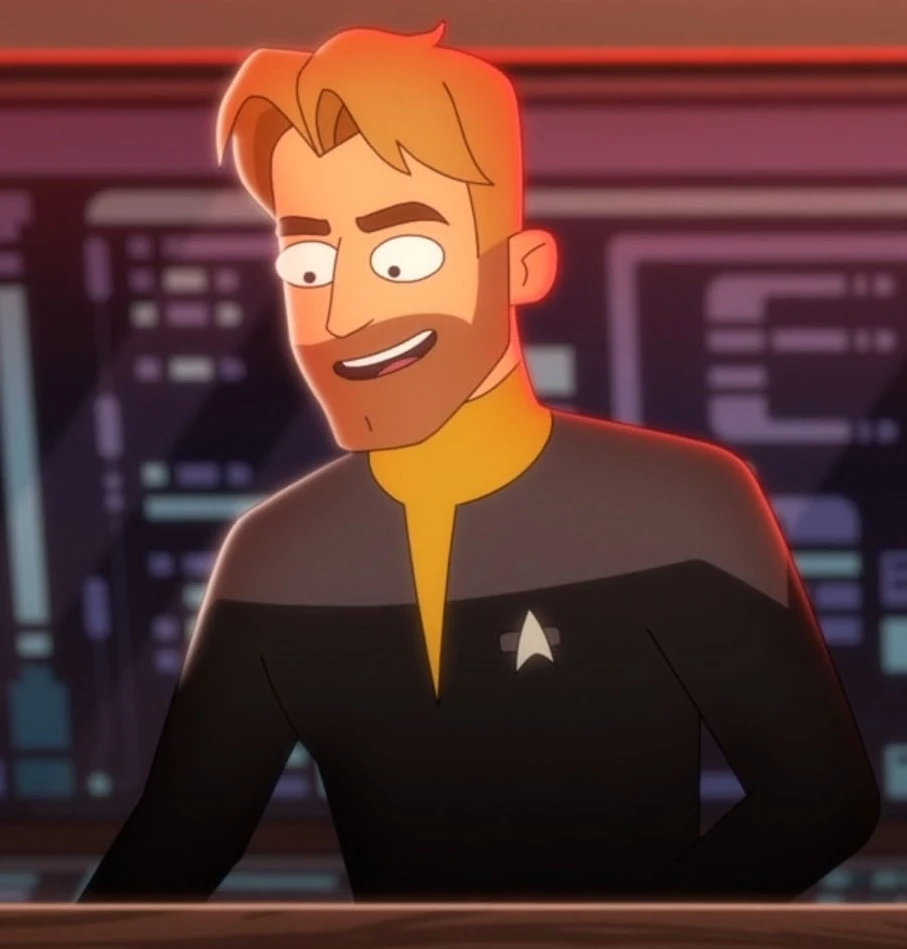 This male Human command division lieutenant, who was joined by one of the Titan's conn officers, was impressed with Lieutenant jg Brad Boimler's knowledge of Tulgana IV in 2380, while meeting Boimler in his quarters before his bridge shift. (LD: "No Small Parts") He continued serving on the bridge in 2381. (LD: "Strange Energies", "Kayshon, His Eyes Open")