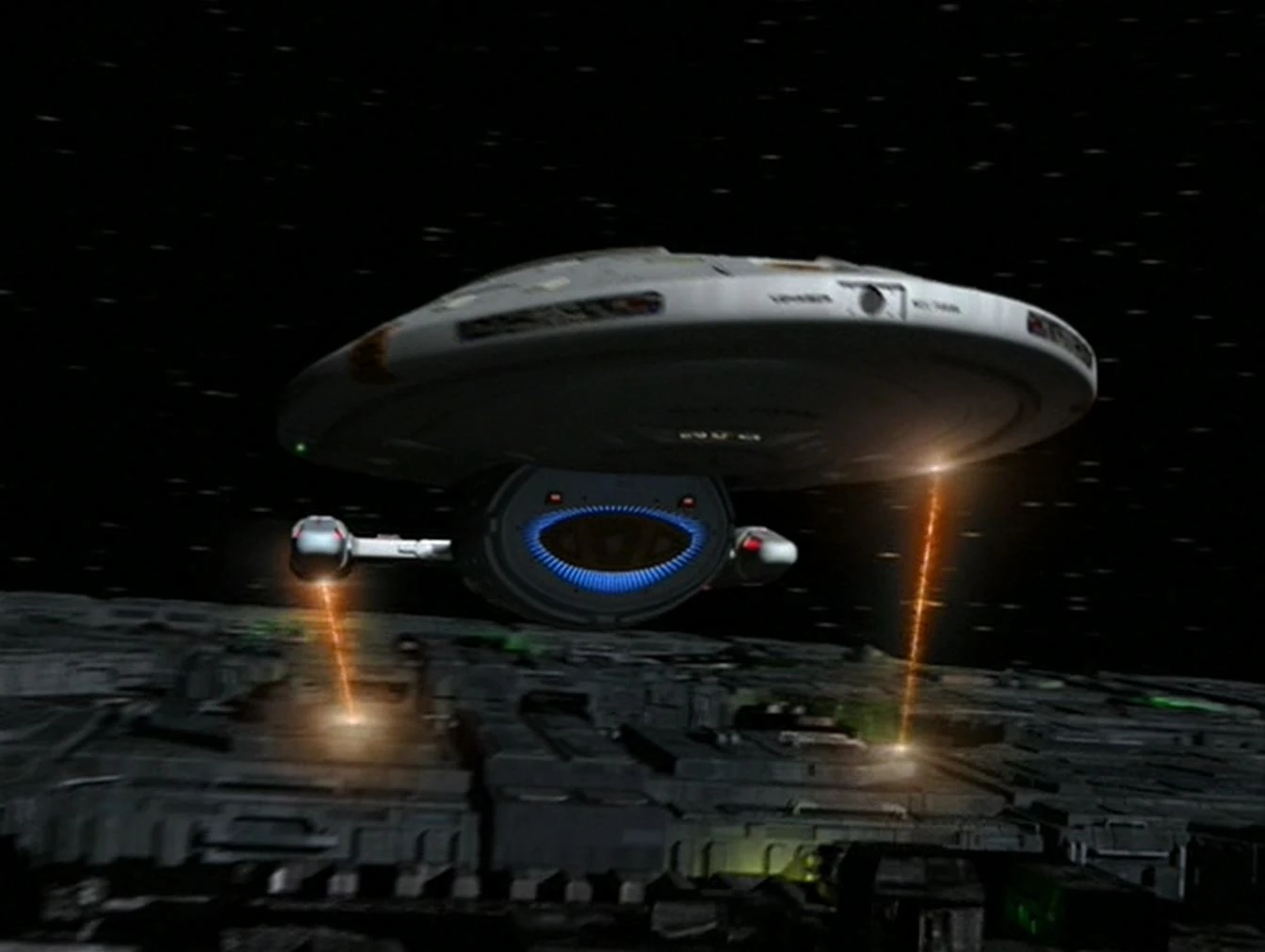 Captain Janeway and the bridge crew receive a distress call at 0900 hours from a colony on an asteroid two light years away. Tuvok cannot pick up any transmission from the colony, just a carrier wave. The USS Voyager changes course to respond to the distress call. They arrive at 1100 hours, only to discover that the colony has been destroyed by the Borg. When Tuvok finds a Borg cube at the edge of the system, Janeway orders Voyager to leave the area at warp 6, making a note in the ship's log.