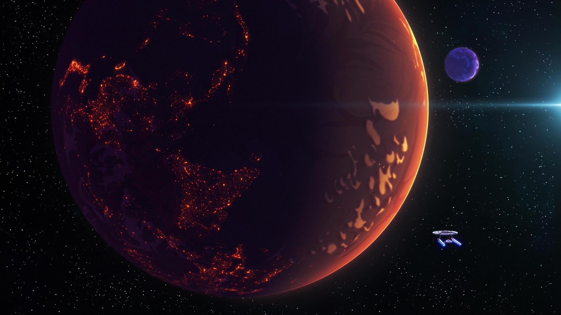 This moon was surveyed by the USS Billings during the second half of the 24th century. The away team sent to the moon had their shuttle damaged by a magma eruption, and [[USS Billings personnel#Injured away team|three crew members were severely injured. However, the next day the ship's novice command officer, Kathryn Janeway, returned to the moon alone to complete the survey. (VOY: "Night")