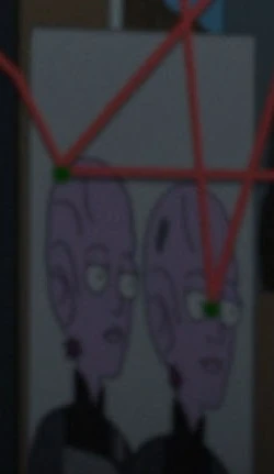 A photograph of two subjects were present on Beckett Mariner's conspiracy board in 2380. (LD: "Cupid's Errant Arrow")