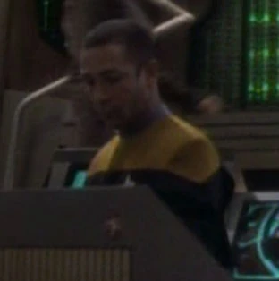 He was on duty when the Bajoran Kohn-Ma terrorist Tahna Los was beamed aboard from his scout ship and Commander Benjamin Sisko had to deal with the pursuing Cardassian warship Aldara's commander, Gul Danar. (DS9: "Past Prologue")