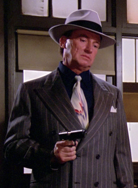 This man was Nicky the Nose's henchman. When Captain Jean-Luc Picard accessed the program in 2373 to escape Borg pursuit, he took the Thompson .45ACP submachine gun of this man to eliminate the two Borg threatening him and Lily Sloane. The henchman was amused when Picard strip-searched him but tried to intervene when Picard grabbed his gun. He was knocked unconscious by Lily who used a champagne bucket. (Star Trek: First Contact)