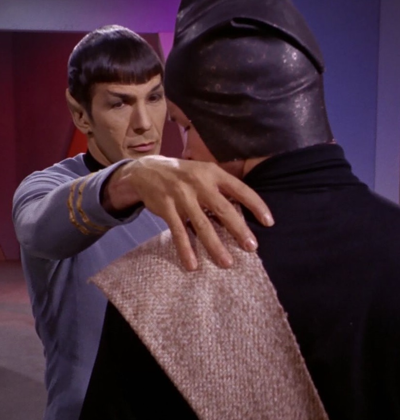 The guard appeared from around a corner just as Spock incapacited another guard with a Vulcan nerve pinch.