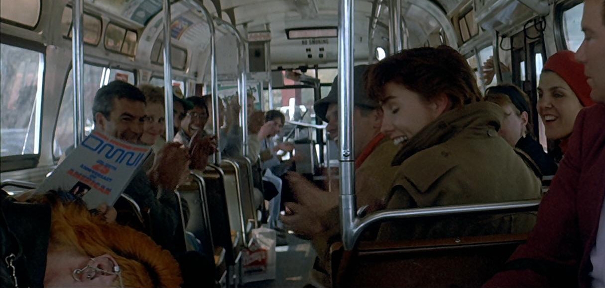These passengers were traveling from San Francisco to Sausalito on a bus along with Admiral Kirk and Captain Spock in 1986. They applauded and cheered when a punk, who had been listening to loud music on his radio, was rendered unconscious with a Vulcan nerve pinch from Spock. (Star Trek IV: The Voyage Home)