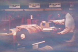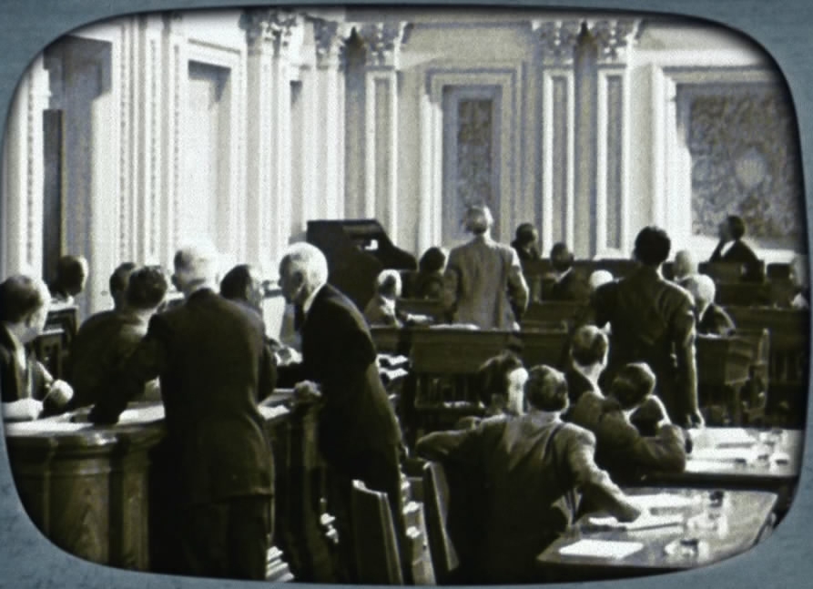 Actors in a shot from the movie The Day the Earth Stood Still. This film was found in the motion picture library aboard the Enterprise in 2152. (ENT: "Cogenitor")