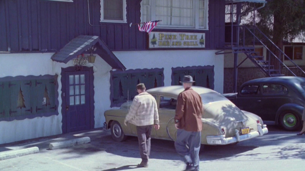 Two customers entering the Pine Tree Bar and Grill. (ENT: "Carbon Creek")