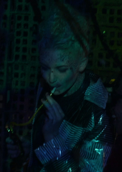 This Trill woman was present in a bar at District Six on M'talas Prime in 2401 at the street where Worf and Raffaela Musiker captured the Changeling Titus Rikka. (PIC: "Seventeen Seconds")